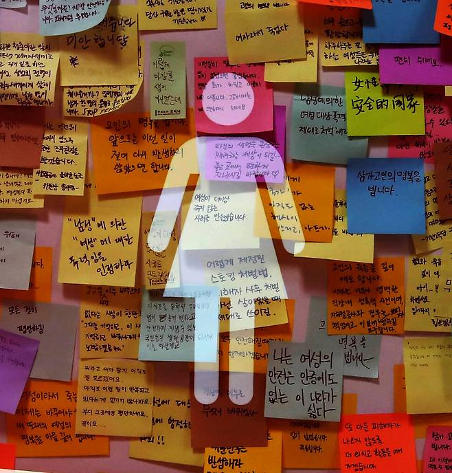 비극은 또다시 반복됐다. 단지 여성이라는 이유로 희생된 이들이 올해도 있었다. 2016년 서울 강남역 살인사건 이후 6년이 흘렀지만, 한국 사회는 별로 달라지지 않았다. 지난 9월 서울지하철 2호선 신당역 여자화장실을 순찰하던 여성 역무원이 살해됐다. 범인은 피해자를 스토킹하던 직장 동료였다. 스토킹 혐의로 불구속 상태에서 재판을 받다 1심 선고를 하루 앞두고 살인을 저질렀다. 이 사건으로 ‘스토킹 피해자 보호법’ 제정이 시급하다는 목소리가 나왔지만, 그 법안은 국회 문턱을 넘지 못하고 있다. 앞서 지난 7월 인하대에서는 성폭행 사망 사건이 발생하기도 했다. 동급생인 가해자는 피해자를 성폭행하다 밀어 숨지게 한 혐의로 기소됐다. 그는 18차례 반성문을 써서 법원에 제출했지만 검찰은 무기징역을 구형했다.