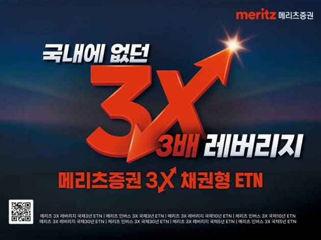 메리츠증권은 국내 ETP(ETF·ETN) 시장 최초로 3배 레버리지 투자가 가능한 채권형 상장지수증권(ETN)을 한국 거래소에 상장했다.