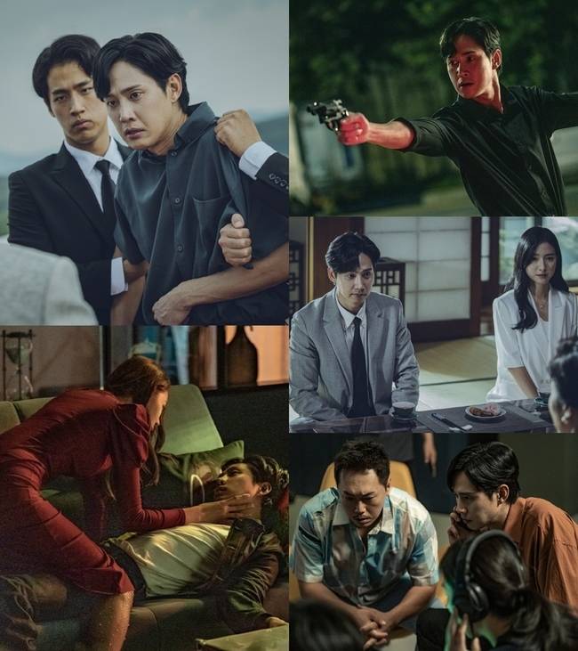 마지막으로, 권총 한 자루를 손에 쥔 채 분노로 가득 찬 도유빈의 모습이 시선을 사로잡는다.