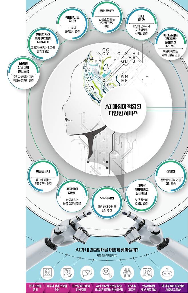 이 같은 AI 매칭은 다량의 데이터를 정밀하게 분석해 ‘실패’ 가능성을 크게 줄여준다. 기술이 발전하면서 단순히 교제 상대를 찾는 수준을 넘어 구인·구직, 과외 선생님, 돌보미 등을 찾는 데도 AI 매칭 기술이 활용되고 있다.