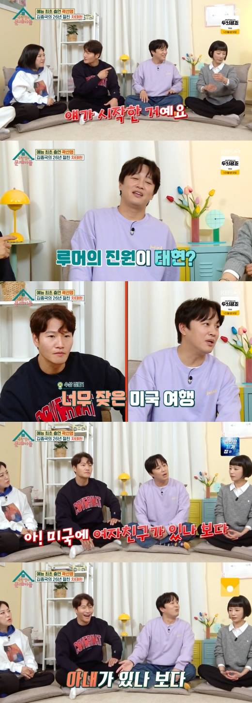 차태현은 “합리적 의심이란 게 있다. 종국이가 LA를 많이 간다. 어느 순간에 그런 의심이 드는 거다. 저기에 여자친구가 있나 보다”라며 입을 열었다.