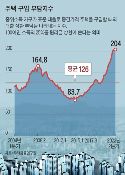 전문가들은 주택 구입 부담지수로 내 집 마련의 적기를 판단할 수 있다고 조언한다. 주택구입 부담지수는 중위 소득 가구가 표준 대출로 중간가격 주택을 구입할 때의 대출 상환 부담을 나타내는 지수인데, 100이면 소득의 25%를 원리금 상환에 쓴다는 의미다. 가계 소득과 금리, 집값을 모두 아우르는 지수로, 집값의 저평가와 고평가를 판단할 수 있다. 한국주택금융공사 주택금융연구원이 분기별로 발표한다.