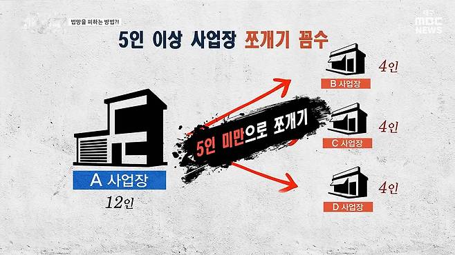 사업장 쪼개기 꼼수가 나온 이유 중 하나는 5인 미만 사업장이 적용 대상에서 빠지고 50인 미만 사업장은 3년간 유예기간을 줬기 때문입니다. 그렇다면 50인 미만 기업이 적용을 받게 되는 2024년 이후 다시 법을 피하기 위해 5인 미만 기업으로 쪼개지는 건 아닐까요?