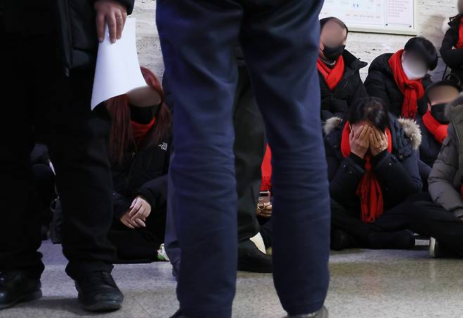 | ▲ 차가운 국회 바닥에서 오열하는 유가족들 지난 27일 오후 국회에서 열린 '용산 이태원 참사 진상 규명과 재발 방지를 위한 국정조사 특별위원회'가 정회된 뒤 유가족들이 이상민 행정안전부 장관의 답변과 국민의힘 의원들의 질의에 불만을 터뜨리며 회의장으로 향하다 가로막힌 뒤 오열하고 있다. |