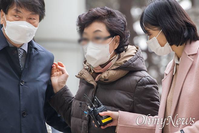 | ▲ 윤석열 국민의힘 대선후보의 장모 최은순씨가 지난 1월 25일 오후 서울 서초구 서울고등법원에서 요양병원 불법개설 요양급여 수급 혐의에 대한 항소심에 출석 하고 있다. |