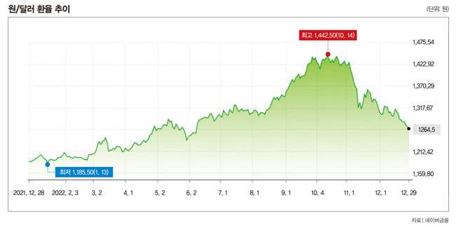 ![2022년 12월 28일 원/달러 환율이 1260원대에 진입했다. 사진은 서울 중구 하나은행 명동점. [뉴스1]](https://img2.daumcdn.net/thumb/R658x0.q70/?fname=https://t1.daumcdn.net/news/202212/30/weeklydonga/20221230100132064dmpc.jpg)