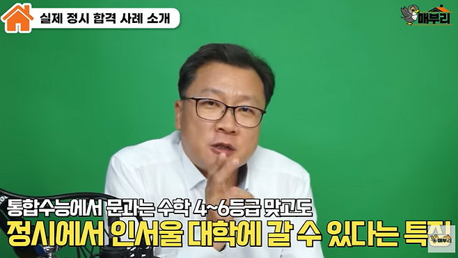 임 대표는 “문과학생들은 수학이 4~5등급, 6등급이 나오더라도 인서울 대학을 갈 수 있다고 지난해 입시 결과 통계가 말해주고 있다”며 “수학 성적이 낮더라도 다른 성적을 잘 보면 얼마든지 커버가 가능하다”고 말했습니다.