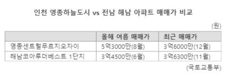 영종신도시 '국평' 3억대로 추락… '땅끝' 해남보다 싸게 팔렸다