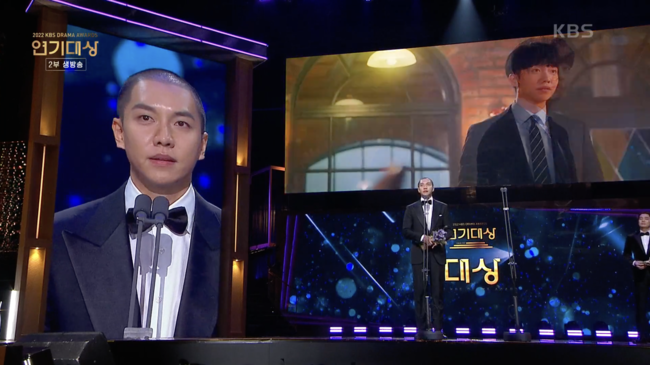 정산과 관련해 전 소속사 후크엔터테인먼트 측과 분쟁을 겪고 있는 이승기가 '2022 KBS 연기대상'에 출연해 진정성 있는 수상소감을 전했다.