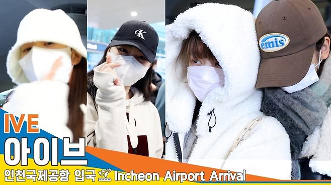 가수 아이브(IVE)멤버 안유진, 가을, 장원영, 리즈, 레이, 이서가 1월 1일 오후 일본에서 방송 된 '제73회 NHK 홍백가합전' 출연 일정을 마치고 인천시 중구 인천국제공항을 통해 입국하고 있다.