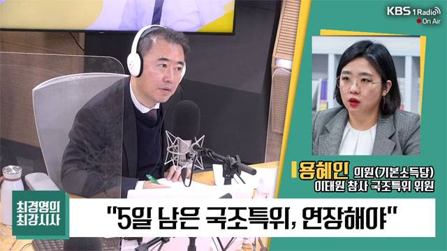 ▷ 최경영 : 이태원 참사 국조특위 활동이 오는 7일 종료됩니다. 오늘이 1월 2일이니까 5일도 안 남았네요. 야권에서는 기간 연장을 해야 한다. 이런 주장이 나오고 있습니다. 국조특위 위원이시죠. 기본소득당 용혜인 의원 전화 연결되어 있습니다. 안녕하세요?