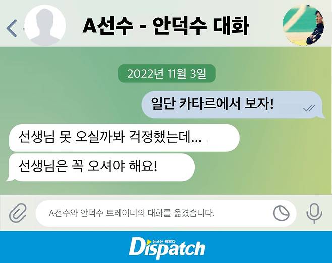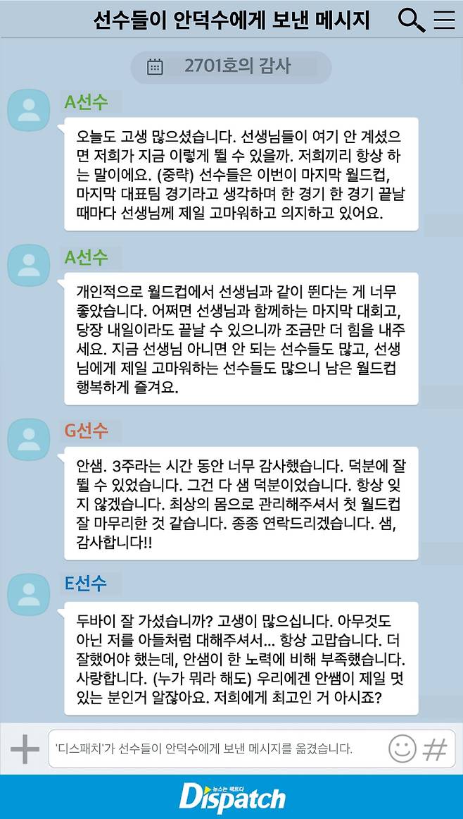 안덕수의 진심은, 2022년 태극전사에게도 전달됐다. 이는 '디스패치'가 입수한 문자 대화로도 증명됐다.