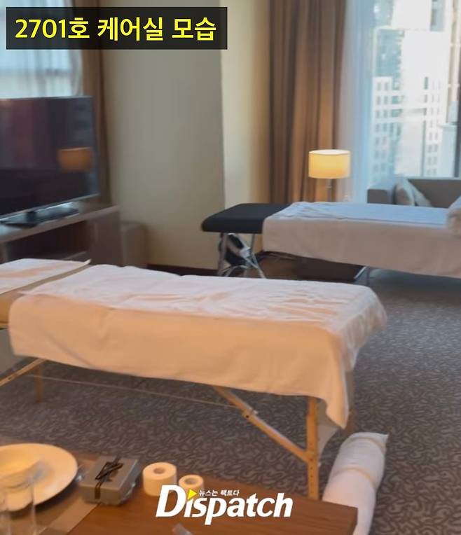 "새벽 2시까지 2701호 불이 켜져 있었다는 후문이 있습니다. 일부 선수들이 축협 미팅에 참석하면서 케어받을 시간을 놓친 거죠. 밤 12시에 관리를 시작한 선수도 있다고 들었습니다." (선수 관계자)