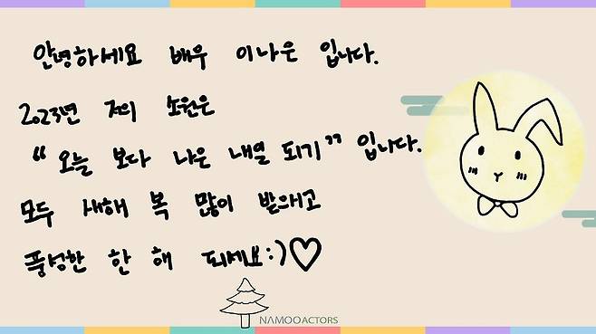 소속사 나무엑터스 측은 1월 1일 네이버 포스트를 통해 이나은의 신년 인사를 공개했다.