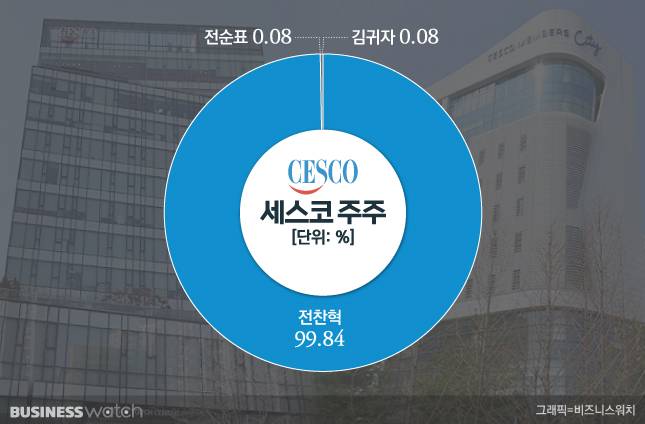 신용평가사에 따르면 전 부회장 소유의 세스코 지분이 99.84%다. 전 부회장 1인 개인회사나 다름없다. 이외 0.16%가 전 창업주 부부 몫이다. 각각 0.08%로 없다시피 하다. (참고로 세스코는 감사보고서에 세부적인 주주현황을 공개하지 않고 있다. 단지 ‘최대주주가 대표이사’라는 것만 밝히고 있다.)