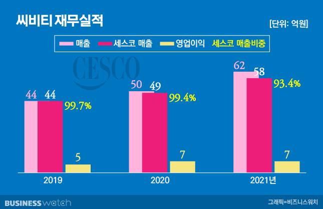 비결? 전적으로 세스코가 자리를 깔아준 덕이라고 할 수 있다. 수치가 증명한다. 2021년 세스코가 매입비용으로 씨비티에 지출한 액수가 58억원이다. 씨비티 전체 매출의 93%다. 즉, 씨비티는 세스코에 해충방제용 약제를 납품하는 게 주된 일이다.