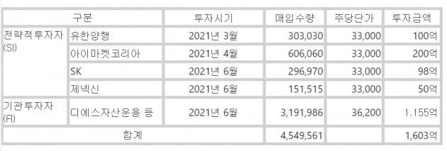 지아이이노베이션은 2021년 증시가 최고점일 때 1600억여원의 투자를 유치하며 몸집을 불렸다. 국내 1위 제약사 유한양행을 비롯해 바이오기업 제넥신 등 제약바이오 회사뿐만 아니라 SK, 아이마켓코리아 등으로부터도 수백억 원을 유치했다. 지금까지 누적 투자액은 2500억원에 이른다.