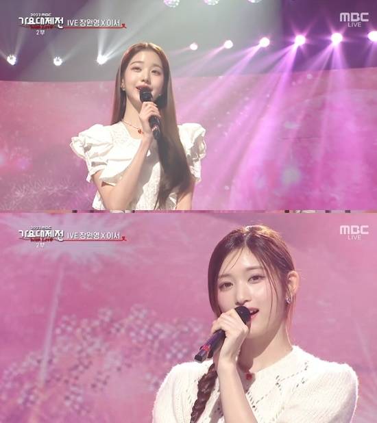 장원영과 이서는 지난해 31일 MBC '가요대제전'에서 유닛 무대를 선보였다. 두 사람은 아이유의 '스트로베리 문'을 불렀고, 화이트 컬러의 원피스를 입고 의자에 앉아 청순미를 발산하며 무대를 소화했다.