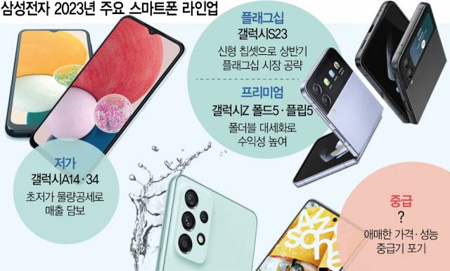 가격과 성능이 애매한 50만~70만원대 중간 가격 제품군은 줄이고, 프리미엄인 갤럭시S23·폴더블과 저가 갤럭시A 시리즈에 집중하는 구도다.