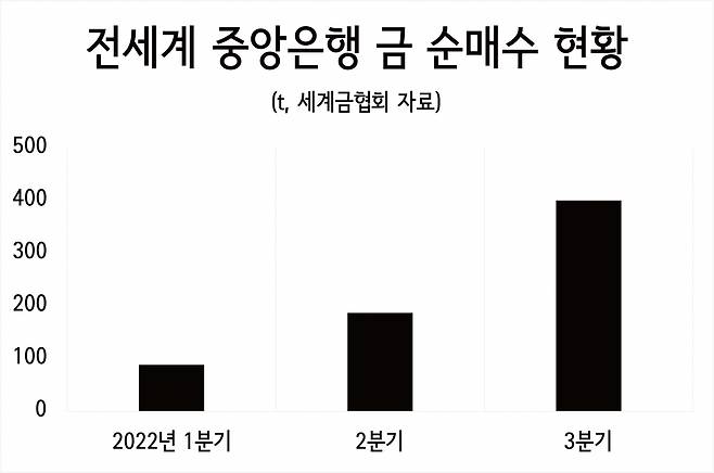 이로써 세계 중앙은행들의 전체 금 보유량은 3만6746t(작년 3분기말 기준)으로 1974년 이후 최대 수준이다.