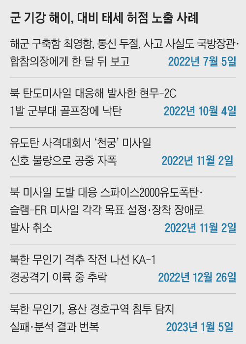군이 북 무인기의 P-73 침투 사실을 파악한 것은 윤 대통령에게 보고하기 하루 전인 지난 3일이었다. 지난달 26일 사건이 발생하고 8일이 지나도록 군은 서울 심장부가 북 무인기에 뚫린 사실조차 몰랐다는 것이다. 군은 당시 P-73 안에 탐지됐다가 소실되기를 반복하는 정체불명의 항적을 발견하긴 했으나 이를 북 무인기로 판단하지 않았다고 했다. 새 떼나 풍선 같은 물체일 가능성이 크다고 봤다는 것이다. 그러나 당시 북 무인기 5대가 우리 영공을 침범해 전투기, 경공격기 등 20여 대의 대응 전력이 투입되는 비상 상황에서 미상 항적이 대통령실 인근에서 발견됐는데도 이를 심각하게 여기지 않았다는 설명은 이해하기 어렵다. 정보 분석력이 현격히 떨어지거나 군이 P-73 방어 실패의 책임을 피하고자 유의미했던 항적을 은폐했던 것 아니냐는 지적이 나온다.