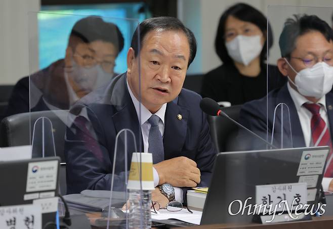 | ▲ 한기호 국민의힘 의원이 13일 경기도 과천시 방위사업청에서 열린 국회 국방위의 방위사업청 등 국정감사에서 질의하고 있다. |