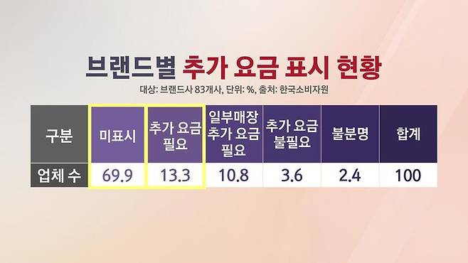 브랜드 10곳 중 7곳은 구매페이지에 추가 요금 여부를 표시하지 않은 것으로 나타났고요.