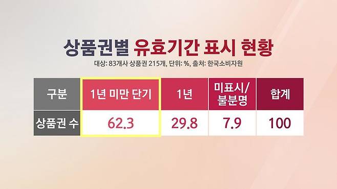 하지만 이것도 조사해보니 상품권 10개 중 6개 이상은 유효기간이 1년 미만인 것으로 나타났는데요.