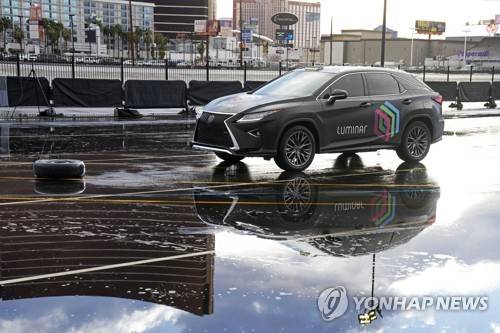IMAGE DISTRIBUTED FOR LUMINAR TECHNOLOGIES - Luminar lidar detects and successfully breaks for a tire on a slick track at CES 2023 on Thursday, Jan. 5, 2023 in Las Vegas, Nev. (Charles Sykes/AP Images for Luminar Technologies) THIS PHOTO WAS TAKEN BY AP IMAGES FOR LUMINAR TECHNOLOGIES