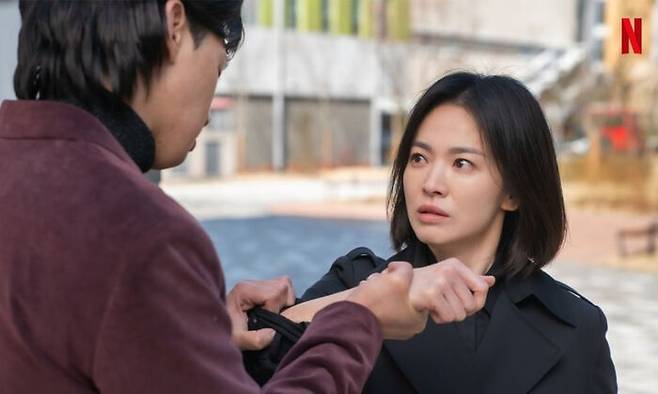 가장 먼저 눈에 들어오는 건 송혜교의 연기다. 밝고 명랑하거나 아름답고 우아한 얼굴은 온 데 간데없다. 푸석푸석한 피부, 창백한 낯빛, 꽉 다문 입술에서부터 피해자의 상처가 읽히는 듯하다. 동은은 삶의 에너지를 복수를 향한 집념으로 교환했다. '눈눈이이'를 실행에 옮기는 움직임은 시종일관 차갑고 서늘하다.
