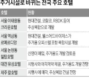 서울 이태원동에서 40여 년간 운영된 크라운호텔은 현대건설과 코람코자산신탁 등에 팔려 150가구 규모의 아파트와 주거용 오피스텔로 탈바꿈한다. 독산동 노보텔앰배서더 부지에선 주상복합(284가구) 공사가 한창이다.