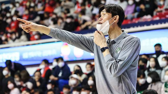 성적 부진 책임을 지고 물러난 이상범 감독 대신 지휘봉을 잡은 김주성 감독대행은 프로 1군 사령탑 데뷔전에서 힘겹게 승리를 거뒀습니다.