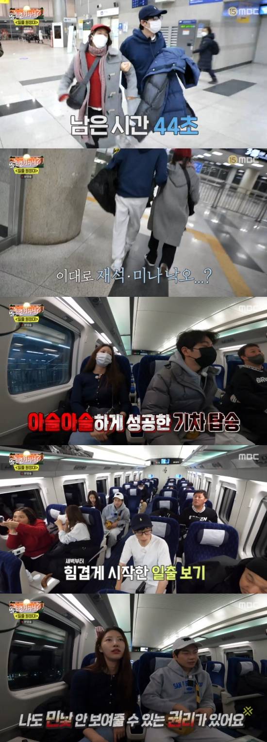 제작진은 2023년을 맞아 일출을 보러 가는 특집을 준비한 것. 멤버들은 청량리역에서 기차를 타야 했고, 유재석과 신봉선은 열차가 출발하기 직전 청량리역에 도착해 차에서 내리자마자 달려야 했다.