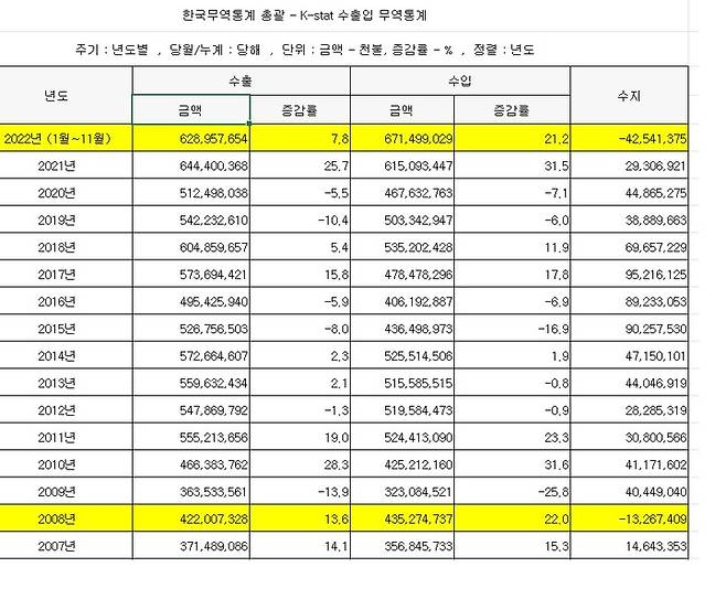우려되는 점은 지난해 무역 적자가 글로벌 경제위기 이후 처음이자, 당시보다 3배가 넘는 수준이란 부분입니다. 이에 무협 관계자는 "2008년 적자는 미국 서브프라임 모기지 사태에서 벌어진 시스템 위기에서 파생된 것이지만, 이번에는 러시아-우크라이나 전쟁으로 인한 공급망 위기가 원인인 만큼 지난해 수출 성적을 2008년 당시와 단순 비교하기는 어렵다"고 말했습니다.