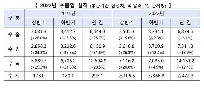 산업부 '2022년 연간 수출입·12월 수출입 동향'