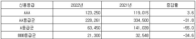 [표] 신용등급별 회사채 연간 발행 규모