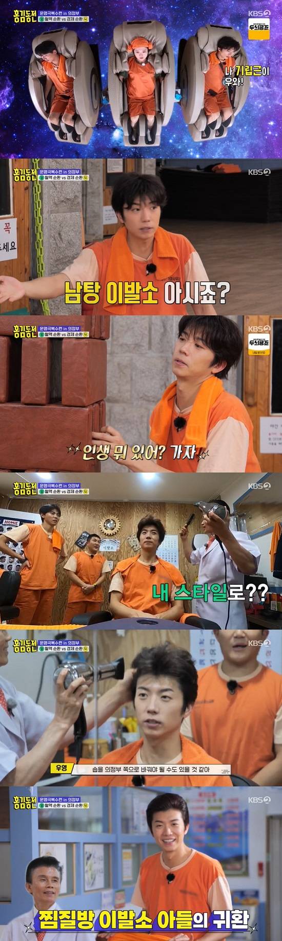 (엑스포츠뉴스 오승현 기자) '홍김동전' 장우영이 파격 찜질방 이발소 변신과 세신 장면을 공개했다.