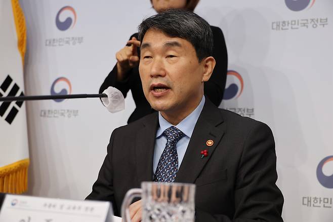 | ▲ 이주호 사회부총리 겸 교육부장관이 지난 5일 정부서울청사 브리핑실에서 교육부의 새해 업무보고를 마치고 브리핑을 하고 있다. |