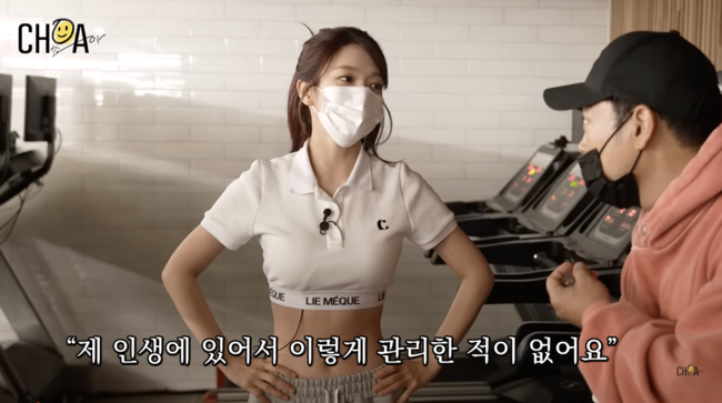 지난 6일, 초아가 진행하는 유튜브 채널 '초아'에는 '초아의 복근을 공개합니다!! 이제 바프 찍으러 가자. 잠재적 마른 비만 탈출기'라는 제목의 영상이 업로드 됐다.