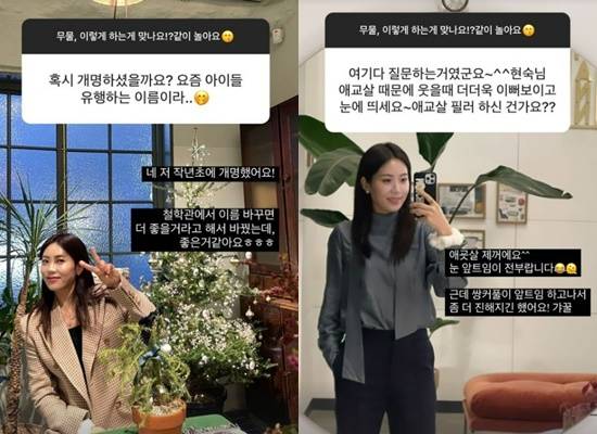 또 '현숙님 애교 살 때문에 웃을 때 더욱 예뻐 보이고 눈에 띈다. 애교 살 필러 하신 것이냐'는 질문에는 "애교 살 제 것이다. 눈 앞트임이 전부다. 그런데 쌍꺼풀이 앞트임 하고 나서 좀 더 진해지긴 했다"고 함께 고백했다.