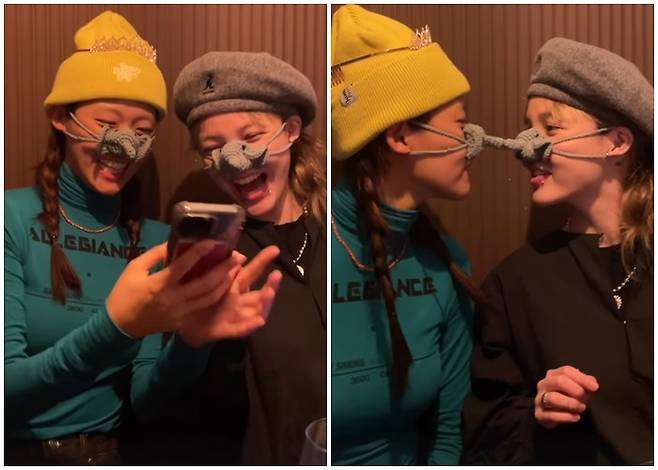 설현은 지민과 함께 코돌이를 착용하고 서로 마주 봤다. 두 사람은 해맑게 웃으며 코돌이에 달린 코를 서로 맞대며 장난치는 모습이 이목을 끌었다.