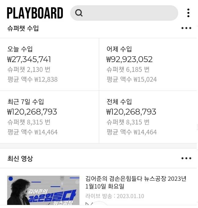진보성향 방송인 김어준씨가 TBS 라디오 '뉴스공장'에서 하차한 후 새로 시작한 '김어준의 겸손은 힘들다 뉴스공장'(이하 뉴스공장) 라이브 방송에서 하루 9000만원이 넘는 '슈퍼챗' 수익을 거둔 것으로 나타났다.