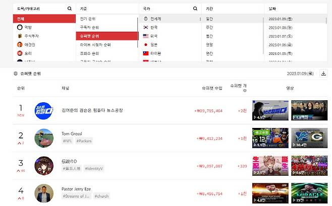 유튜브 각종 순위 정보를 제공하는 '플레이보드'에 따르면 9일 방송된 '겸손은 힘들다 뉴스공장' 라이브는 슈퍼챗으로 2970만원의 수익을 거둬 같은 기간 전세계 1위를 기록했다.