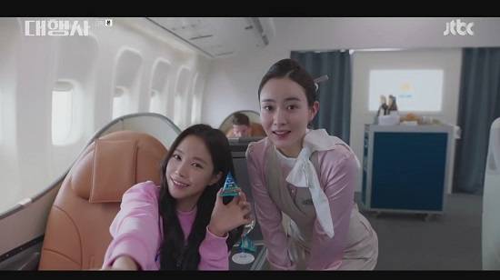 최근 첫 방송된 JTBC 신규 드라마 '대행사'에는 발랄한 인플루언서 겸 재벌집 막내딸 역인 강한나(손나은)이 등장했다. 강한나는 VIP에게 기내 간식 포장을 뜯지 않고 대접했다는 이유로 떨고 있는 승무원과 다정하게 셀카를 찍었다.