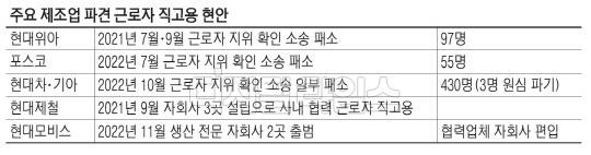 홍종선 한국경영자총협회 근로기준정책팀장은 "독일·일본 등 제조 경쟁국에서는 직접생산 공정을 포함해 최소한의 업종만 파견근무를 제한하고 있지만 한국은 32개 업종만 허용된다"며 "불법파견에 대한 지나친 기준은 출발부터 발목을 걸어 잠그고 뛰어야 하는 상황을 만드는 만큼 이를 해소할 필요가 있다"고 밝혔다.