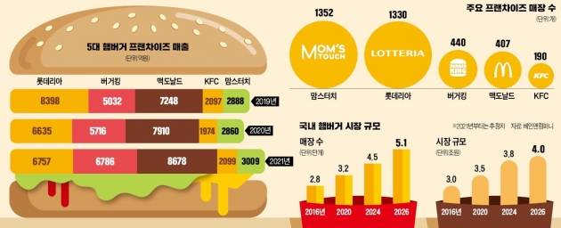 KFC는 글로벌 시장 내 대표 치킨 프렌차이즈이지만 국내에선 치열한 업계 내 경쟁에 밀려 존재감을 잃었다. 중저가 시장을 공략한 맘스터치와 프리미엄 브랜드를 유지한 버거킹 사이에서 브랜드 전략을 세우는 데 실패했다는 평가가 나왔다. 전국 매장 수 기준으로도 맘스터치가 가장 많은 1352개 매장을 보유하고 있고 롯데리아(1330개), 버거킹(440개), 맥도날드(407개) 순이다. 190개 매장을 운영하는 KFC는 5위에 머물러 있다.