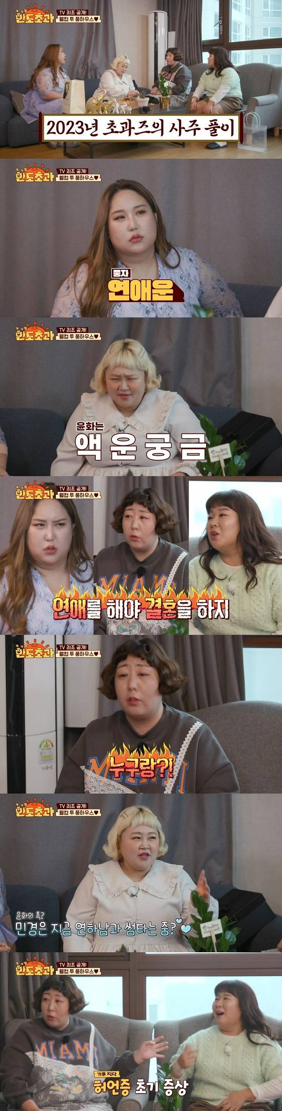 계속되는 김민경의 결혼 발언에 신기루는 "누구랑 한다는 거냐", 풍자는 "연애는 하냐"고 추궁했다.