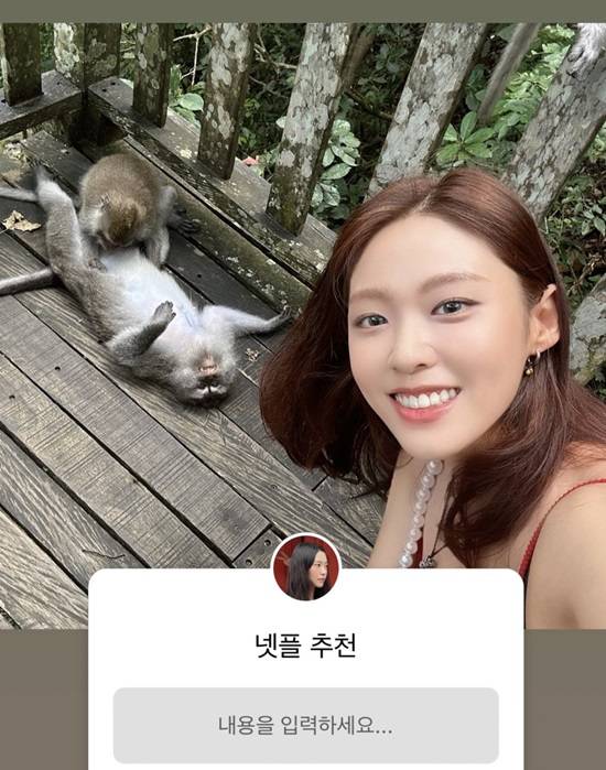 공개된 사진에는 설현이 SNS에 팬들과의 소통을 위해 올렸던 게시물 캡처 이미지가 담겼다. 그가 넷플릭스 추천을 바라며 올렸던 사진에는 설현이 원숭이 두 마리와 함께 찍은 셀카가 배경으로 사용됐다.