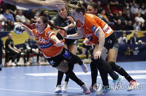 epa10405489 Helena Elver Hageso of Odense Handbold (L) in action against Emilie Hegh Arntzen of CSM Bucuresti (2-nd L) during the EHF Champions League Women group phase match between CSM Bucuresti and Odense Handbold, in Bucharest, Romania, 14 January 2023. EPA/ROBERT GHEMENT