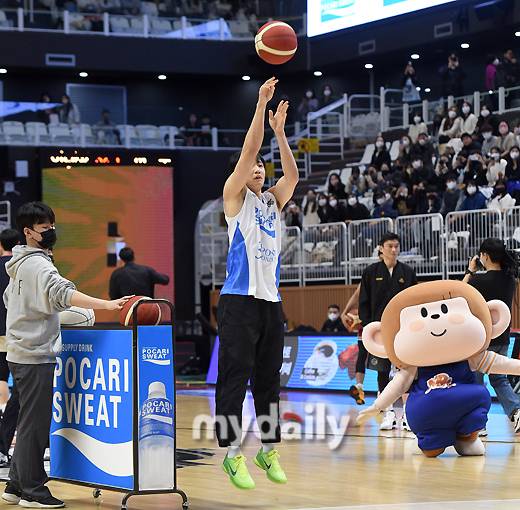 [마이데일리 = 수원 유진형 기자] 전주 KCC 허웅이 15일 오후 경기도 수원 KT 소닉붐 아레나에서 진행된 '2022-2023 SKT 에이닷 프로농구' 올스타전 3점슛 콘테스트에서 슛을 쏘고 있다.